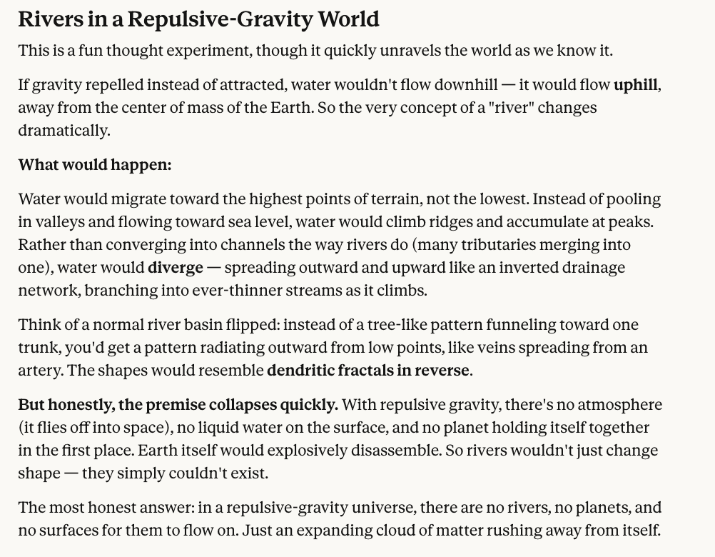 In a world where gravity repels objects instead of attracting them, what shape would rivers take?