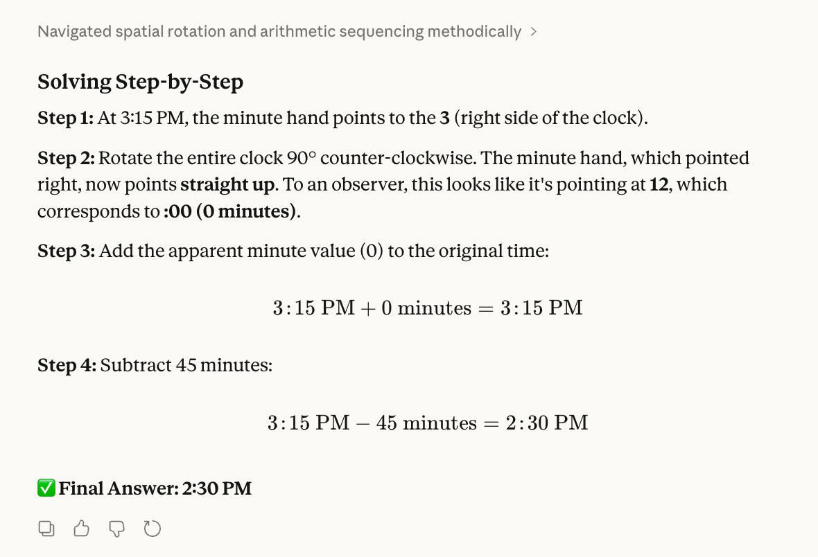 In designing the test, we expected that models might confuse rotating the clock face with moving the hand. We have also heard that models tend to think of adding 0 as suspicious and, therefore, will try to force a different number.