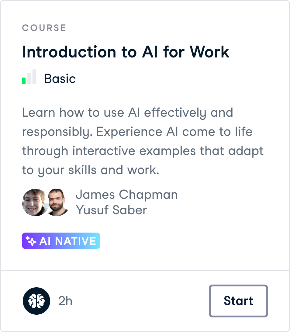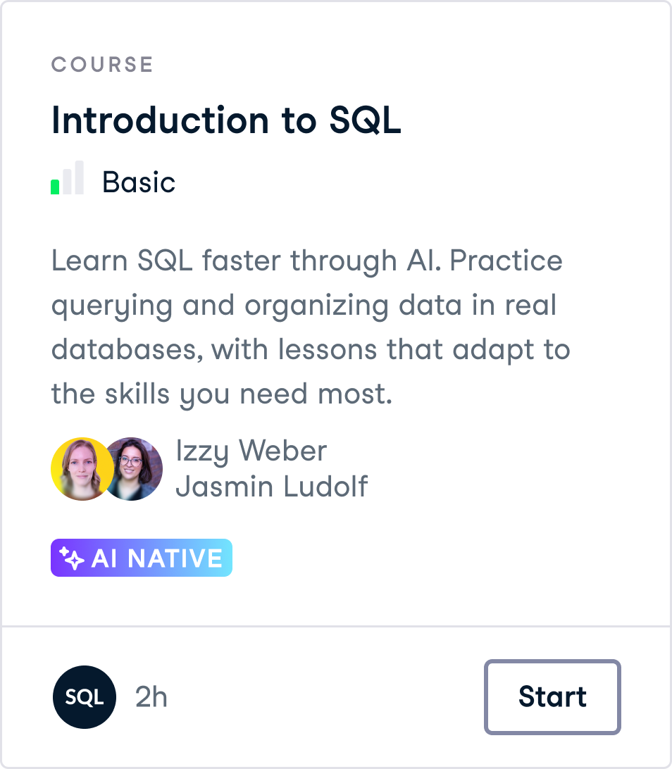 Starting today, Premium subscribers can access the AI-native experience in Introduction to AI for Work and Introduction to SQL courses. Alongside, all free registered learners can access the first chapter of both courses.