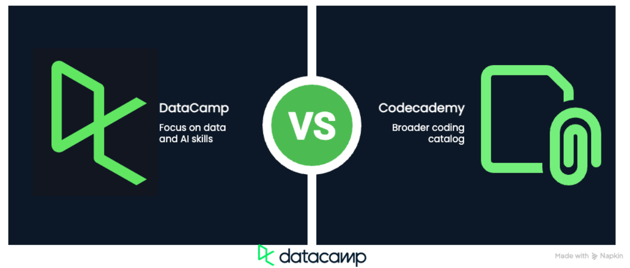 In this article, we’ll explore DataCamp versus Codecademy, two of the most popular platforms for learning technical skills online. We’ll examine key areas of comparison, including costs, curriculum, certifications, and learning styles. By the end, you should be able to determine which one is best for you and feel confident in your decision as you move forward, accomplishing your goals.