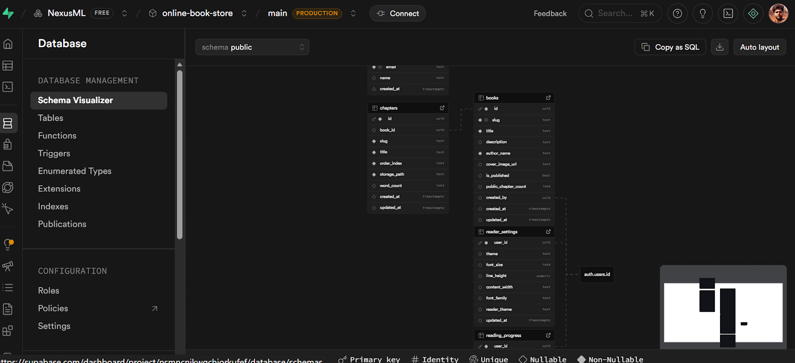 Schema management is handled by Drizzle running locally. Authentication is managed using Better Auth, keeping identity and access fully under your control.