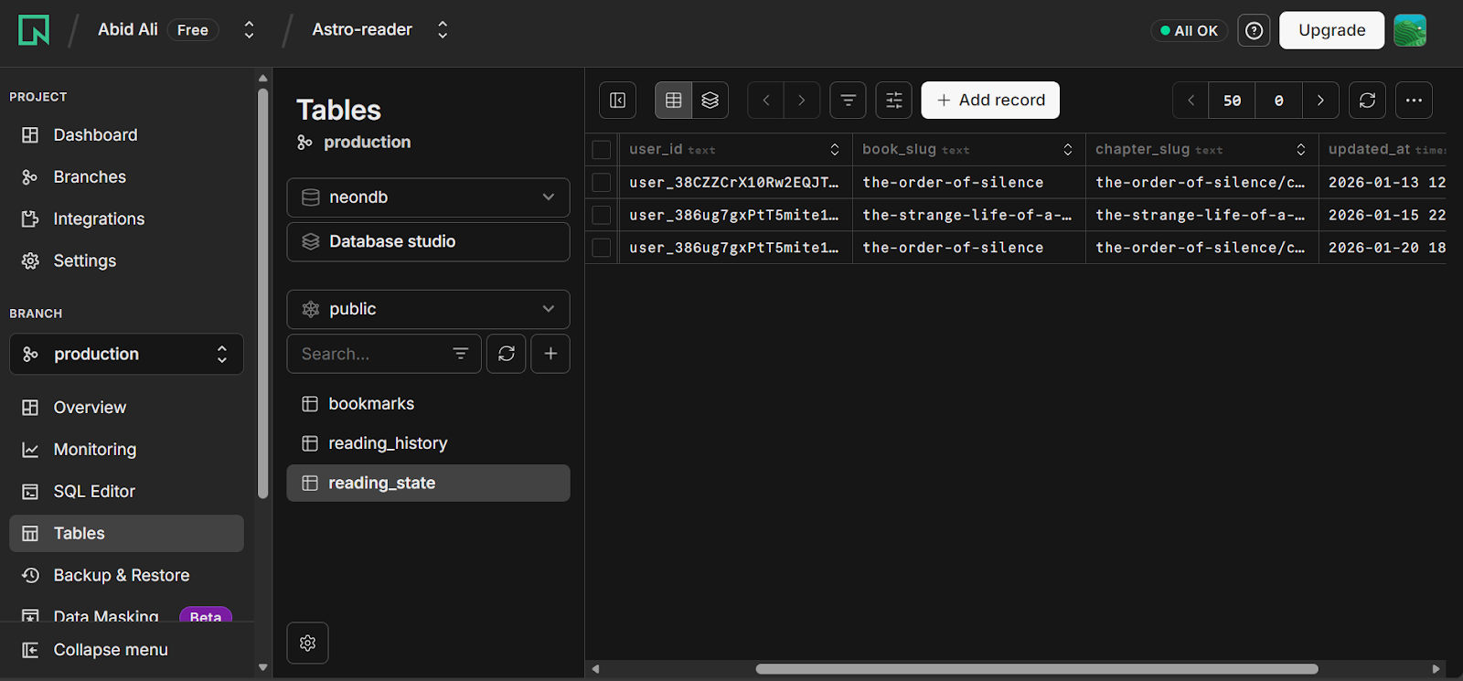 - Database: Postgres on Neon
