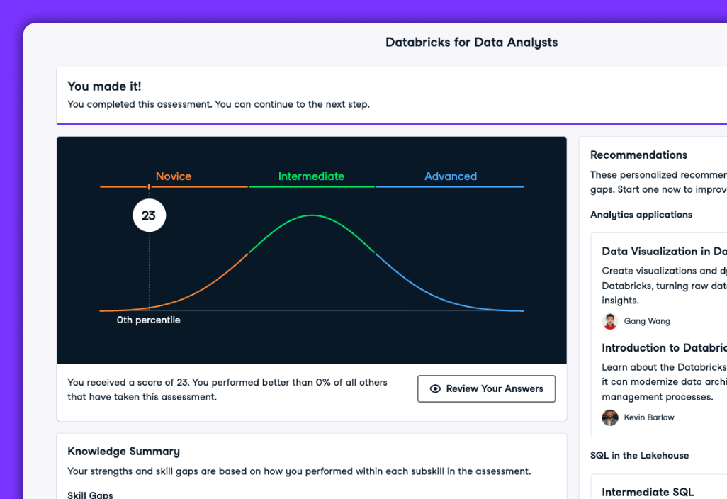 Use aggregated insights to track team progress, benchmark performance, and prove the impact of upskilling efforts.