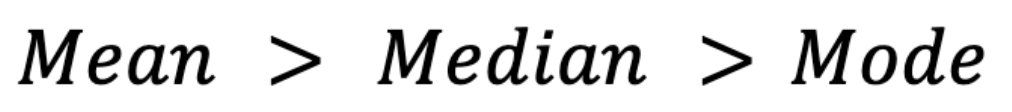Die Schiefe beeinflusst auch diese Maße. Bei rechts verschobenen Verteilungen (z. B. Einkommensdaten) ist der Mittelwert normalerweise höher als der Median, der wiederum höher ist als der Modus.(Mit Modus meine ich hier den Modus in einer kontinuierlichen Verteilung, wo der Modus der Höhepunkt der Wahrscheinlichkeitsdichtekurve ist, vorausgesetzt, dass es einen gibt.)