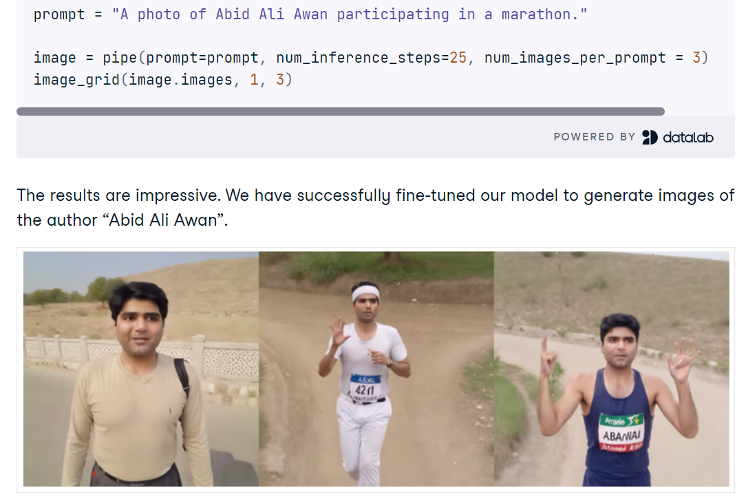 A continuación, ajustas SDXL en un pequeño conjunto de fotos personales utilizando AutoTrain Advanced con DreamBooth, lo que produce un adaptador LoRA compacto en lugar de un punto de control completo para una inferencia rápida y eficiente en términos de memoria. Después del entrenamiento, se añaden los pesos LoRA a la canalización base, se prueban nuevas indicaciones y se evalúa cuándo el refinador ayuda o perjudica la fidelidad de la identidad.