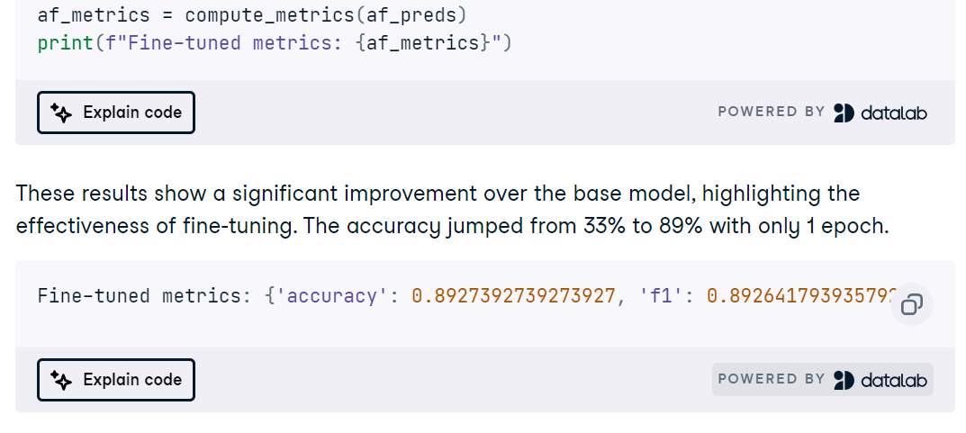 A continuación, preparas un conjunto de datos de preguntas y respuestas médicas con formato Harmony, configuras el entrenamiento y ajustas el modelo, seguido de una evaluación posterior al ajuste para medir las mejoras.