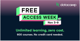Free Week gives unlimited week-long access to everything DataCamp Premium offers and is available to individuals anywhere, anytime. So if you’re looking to learn or develop your programming skills, you can get started for free.