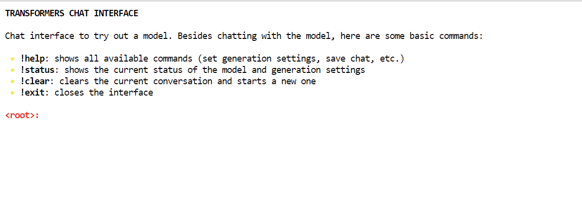 Le chat Transformers déterminera automatiquement quel modèle déjà téléchargé choisir et le chargera. Au début, le chargement du modèle peut prendre un certain temps, mais une fois celui-ci terminé, vous pouvez commencer à discuter.