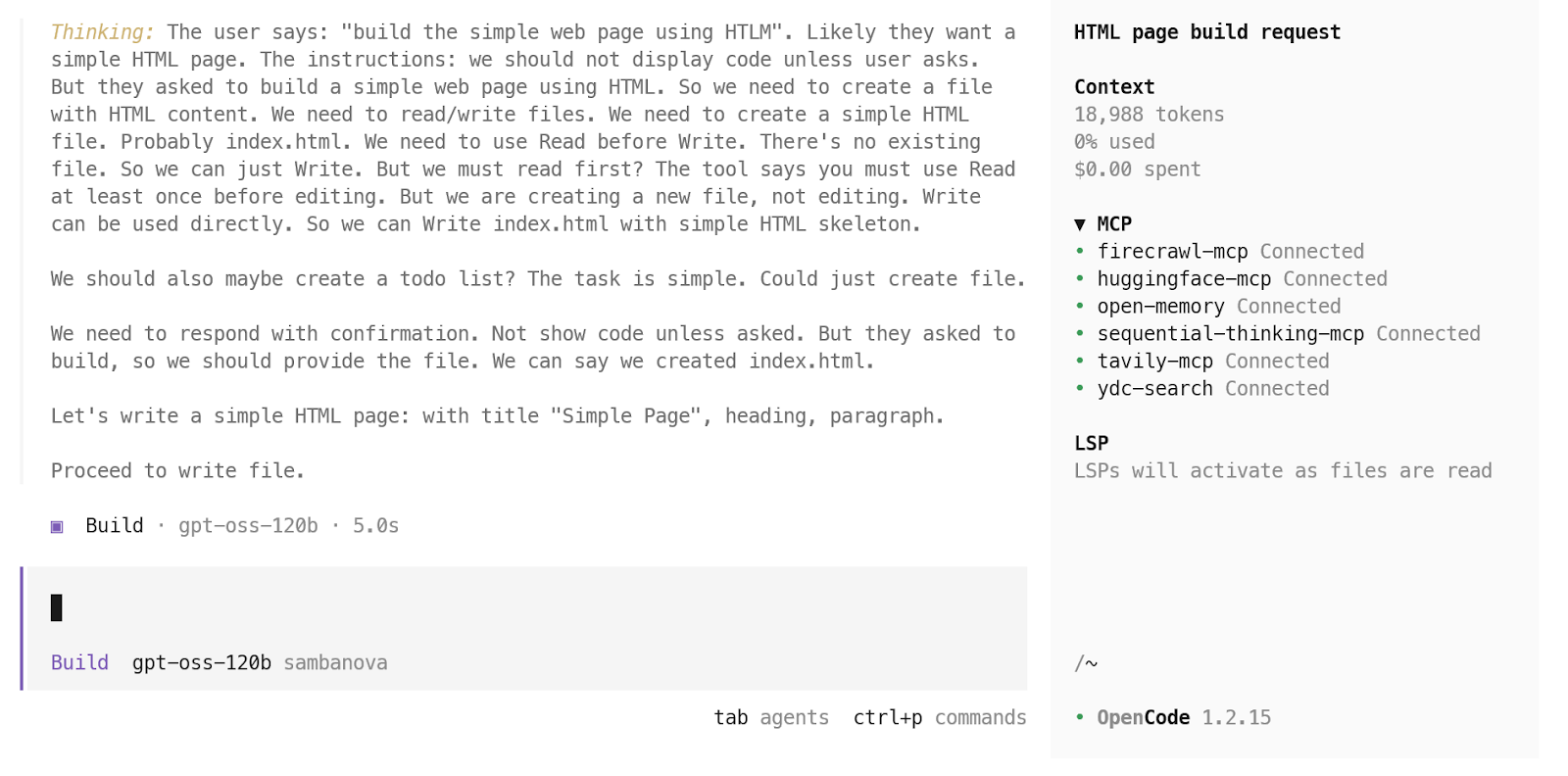 What I like about openCode is that it goes beyond a simple terminal chat loop. OpenCode supports a terminal UI, desktop app, and IDE extension, while adding features like LSP support, multi-session workflows, and broad model access across providers and local models. That gives it a much more serious developer feel than a lightweight terminal wrapper.
