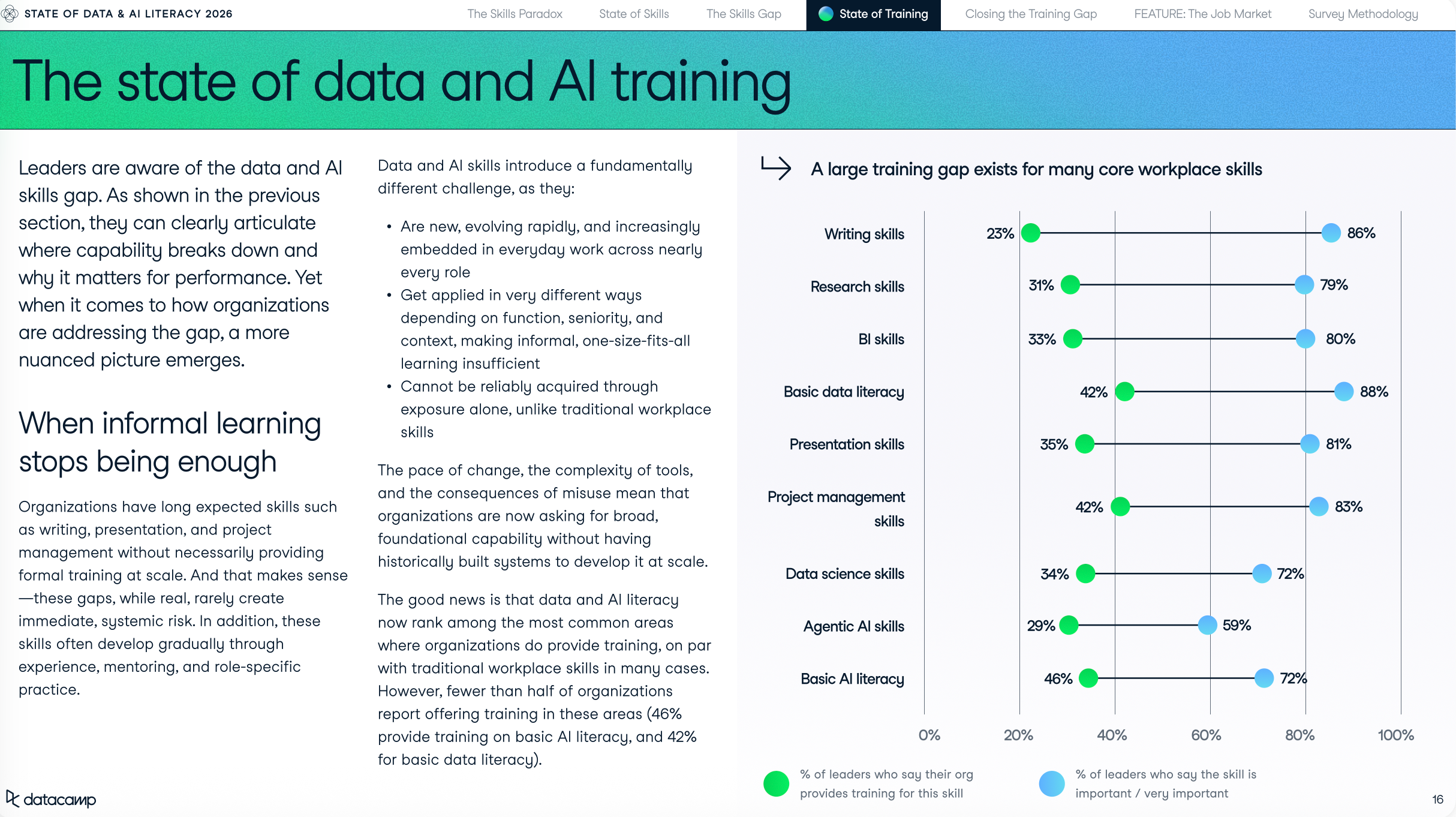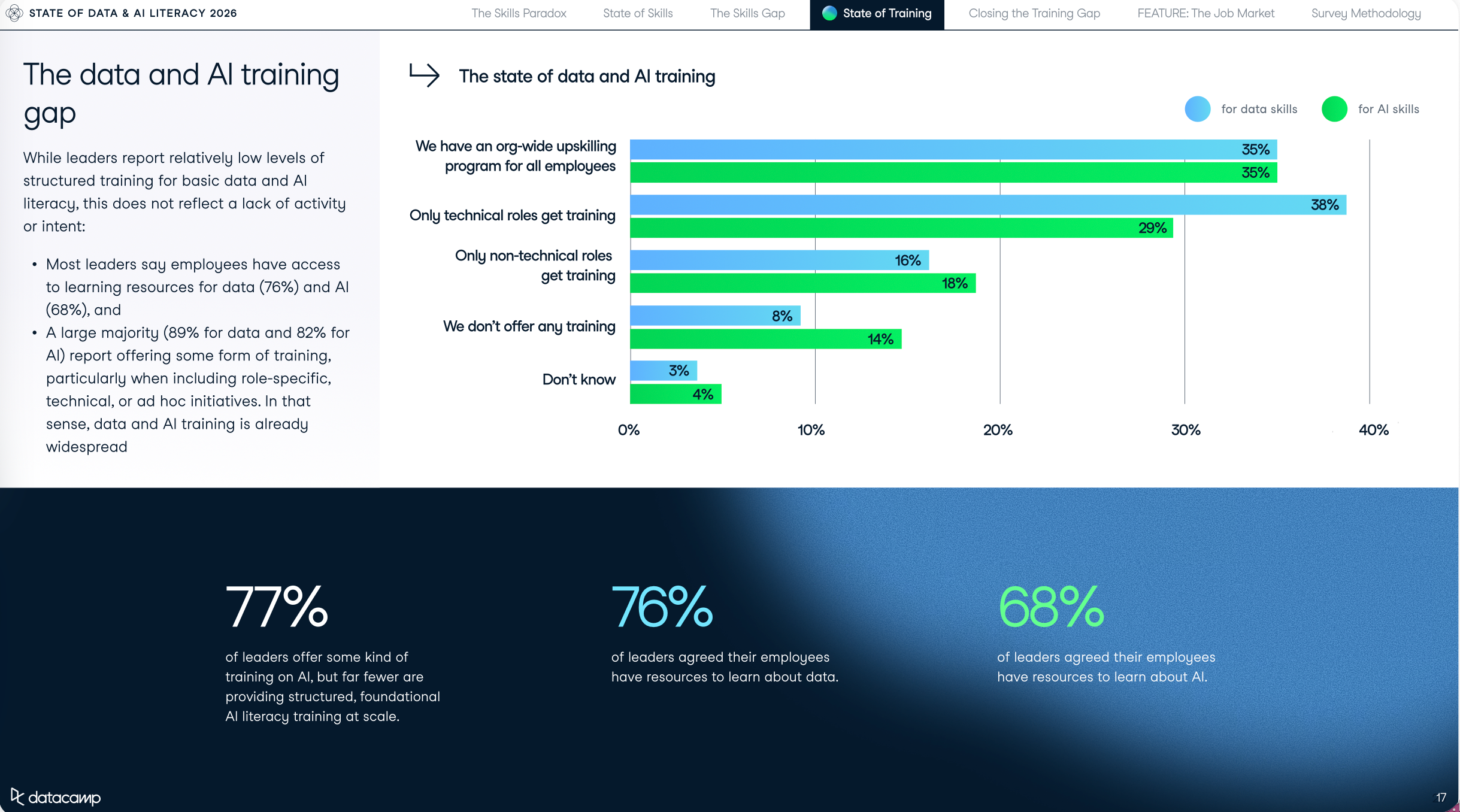 “The data and AI skills gap persists not because leaders don’t value the importance of these skills, but because we haven’t redesigned how we build them.”