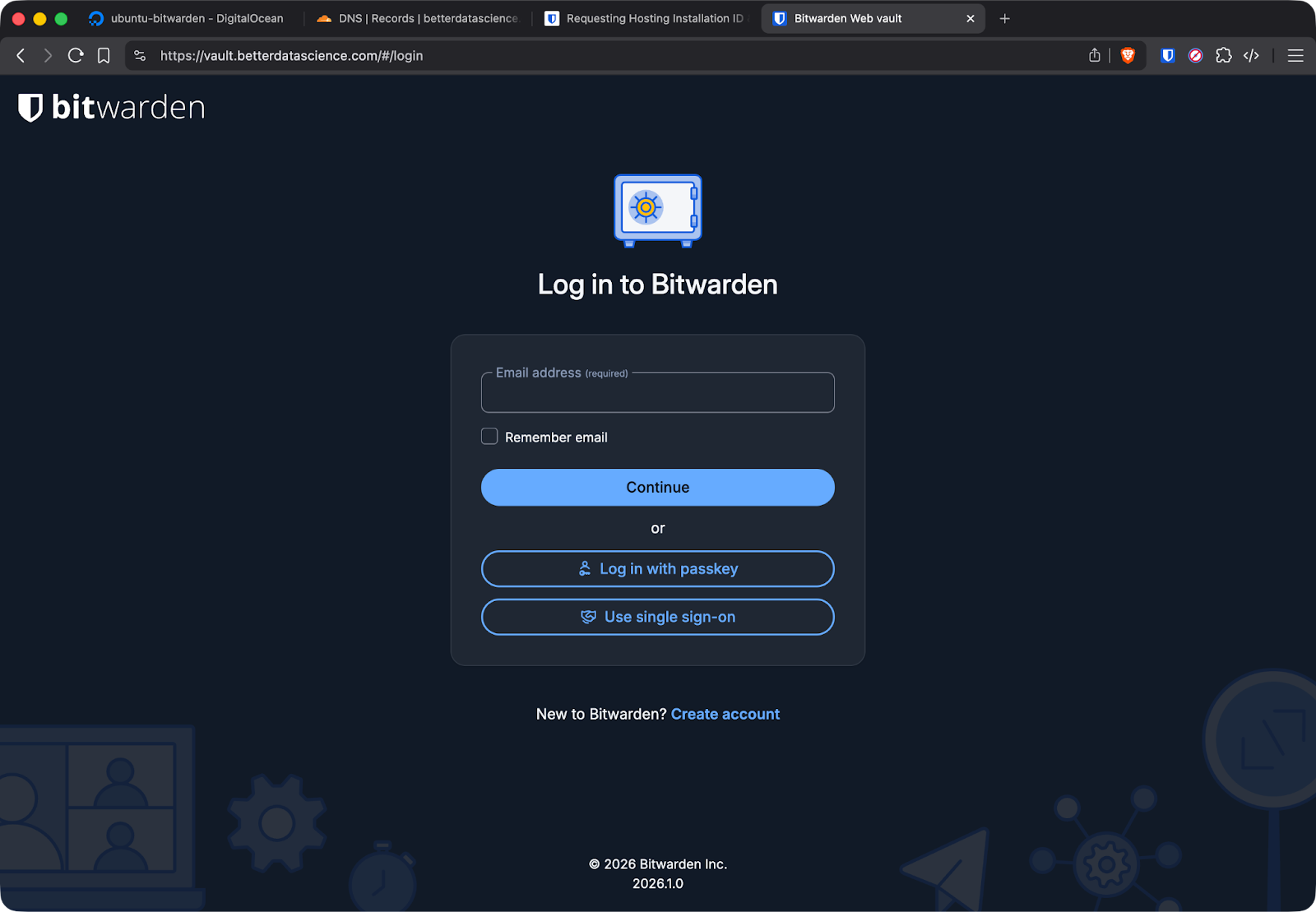 Open your domain in a browser. You should see the Bitwarden login page with a valid HTTPS certificate.