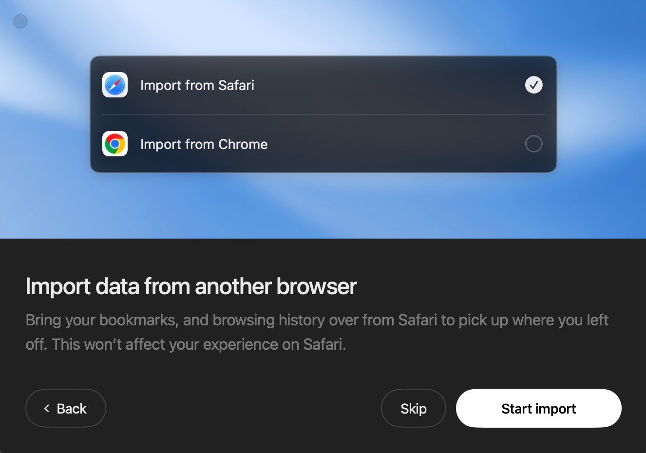 You can either import your data from Safari or Chrome, or just skip this step.