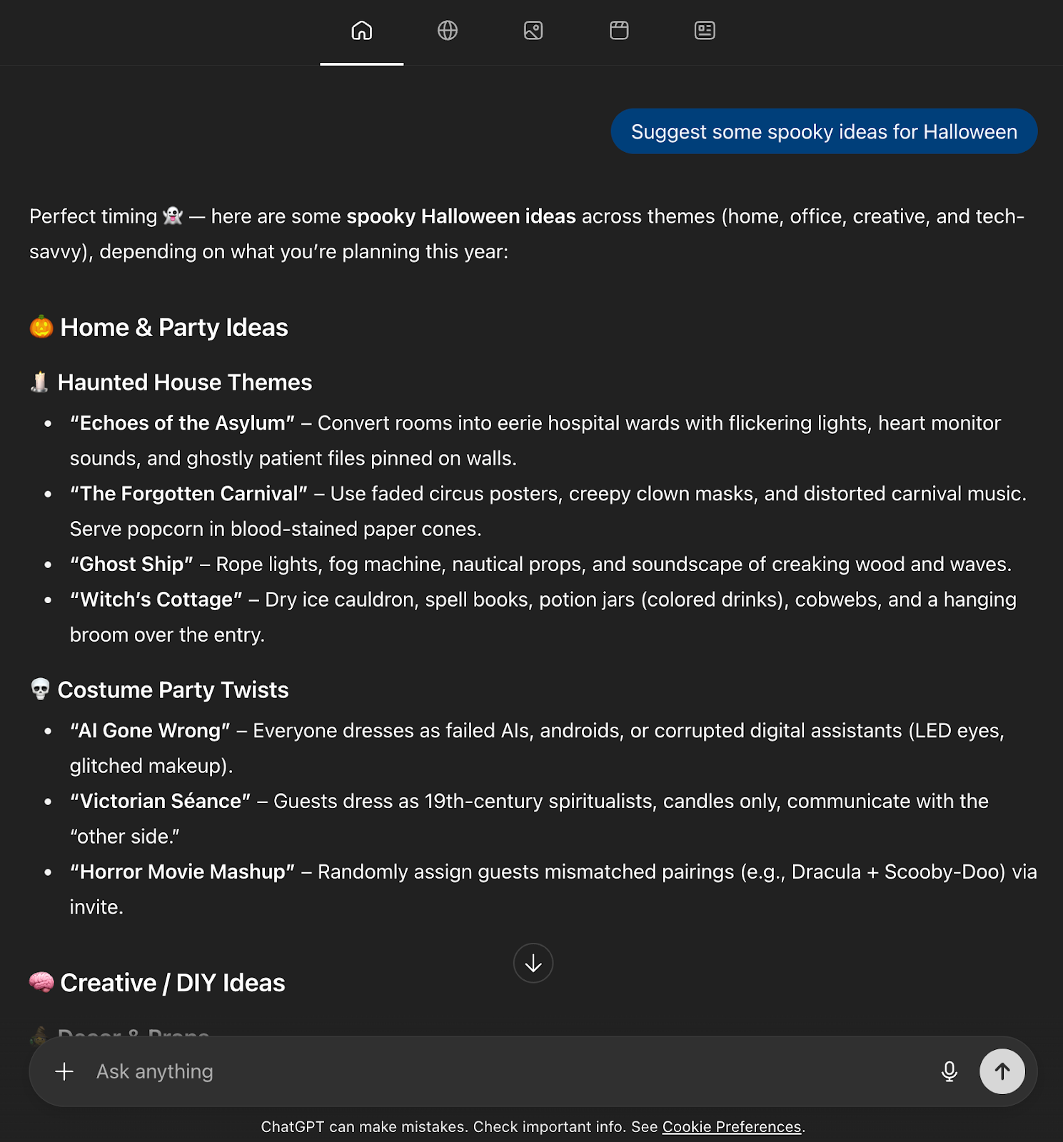 Prompt: Suggest some spooky ideas for Halloween