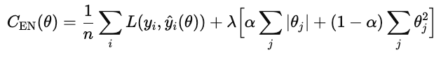 λ controls how strong the overall regularization is. α is a number between 0 and 1 that control the percentages of L1 versus L2, where 1 is pure L1 and 0 is pure ridge.