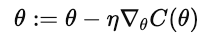 where θ are the model parameters, n is the learning rate, and