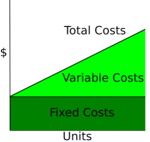 Cost curves show how costs vary as a function of total quantity produced. Fixed costs are constant, so are displayed as a horizontal line, while variable costs rise as a function of the units produced.