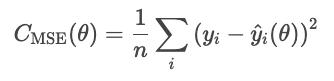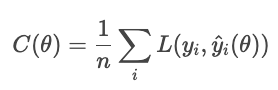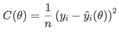 A note about the function parameter. θ represents the model parameters. The optimizer controls cost based on these parameters, not directly on the predicted values that arise from them. Therefore, we write the cost as a function of the θ, not Ŷi.