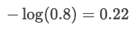 Suppose the true label is "cat" and the model predicts probabilities: cat: 80%, dog: 15%, bird: 5%. The loss is