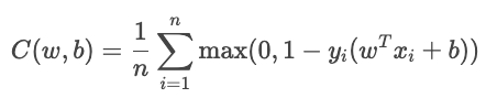For binary classification, the hinge loss is given by the following formula.