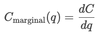 - Marginal cost (MC). The cost of producing one more unit, which is given by the derivative of cost with respect to quantity.