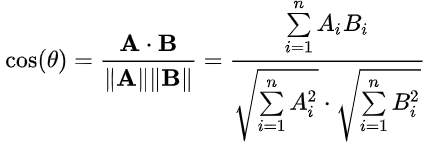 Then, by dividing the norms of A and B from both sides, we get the cosine similarity: