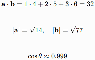 To understand dot product calculation more intuitively, I will show examples of measurement. Consider two 2D vectors a=(1,2) and b=(3,4). Algebraically: