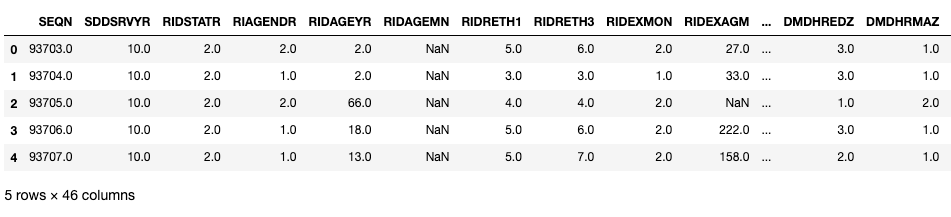 Let us manually download the XPT files from CDC and put them in a local data/ folder:
