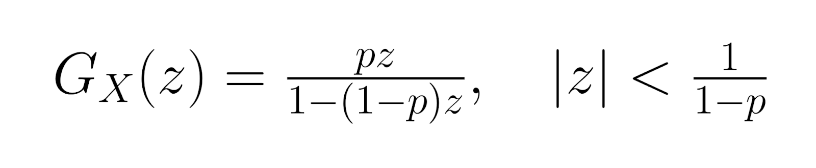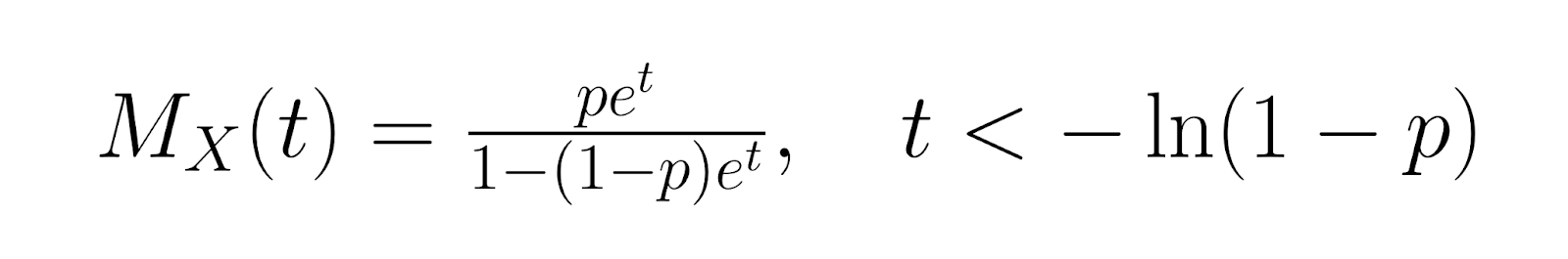 For more advanced analysis, the moment generating function (MGF) for the geometric distribution is: