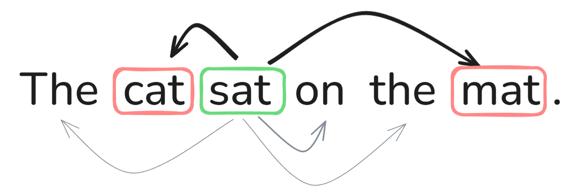 - “The cat sat on the mat.” → Our model might focus attention from sat to both cat and mat.